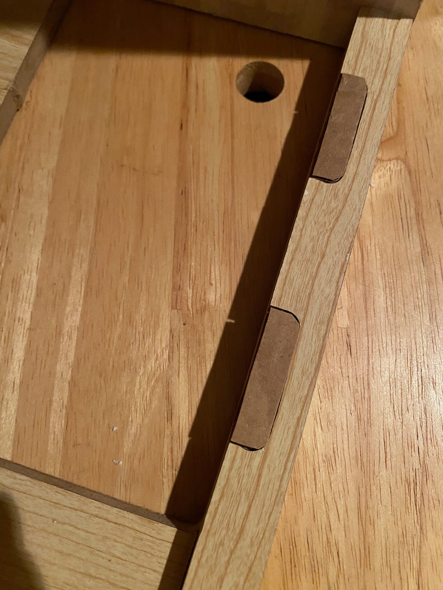 My first steps were to remove the broken door and fill in the holes where the door hinges used to be. I chose to fill it with cardboard, and will later cover it as part of the wall. In its place, I’ll make a new door.